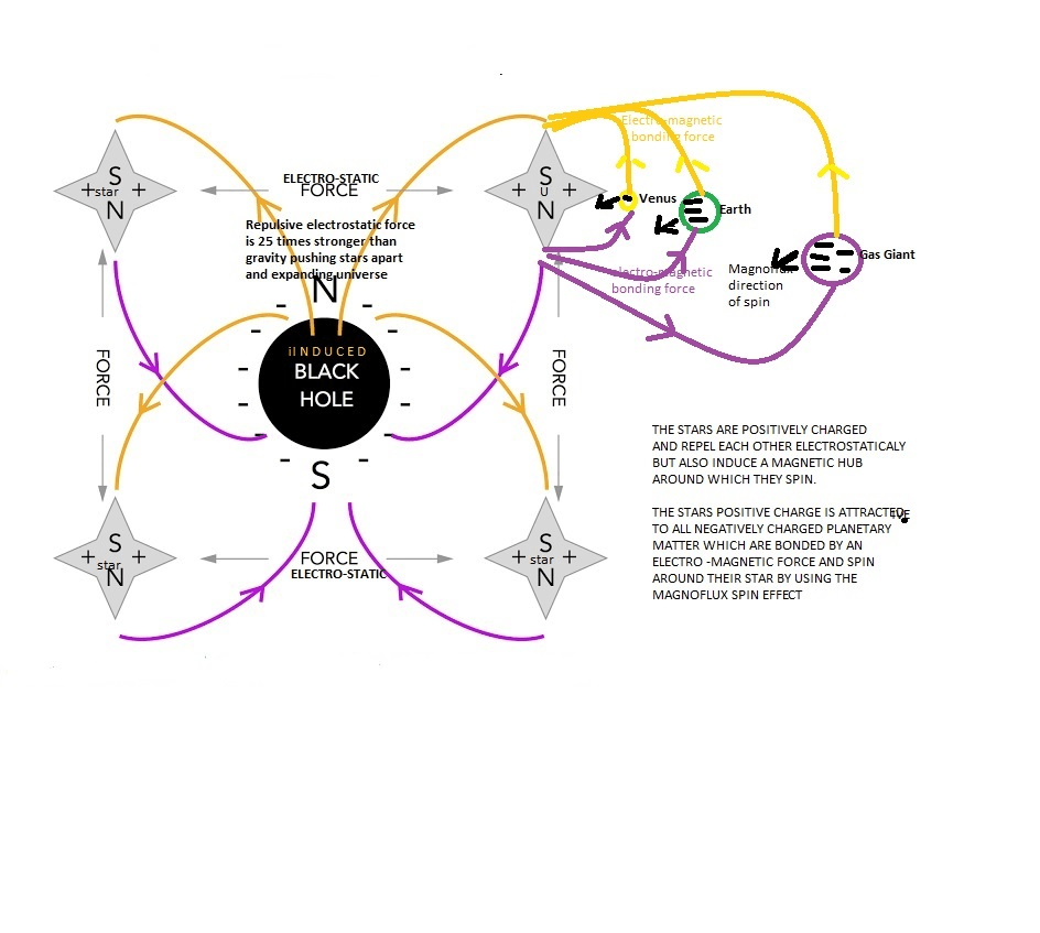 Sketch of a galaxy below shows magnoflux3D galaxy dark electrostatic forces pushing the stars apart and thus expanding the universe and spinning the galaxies.
